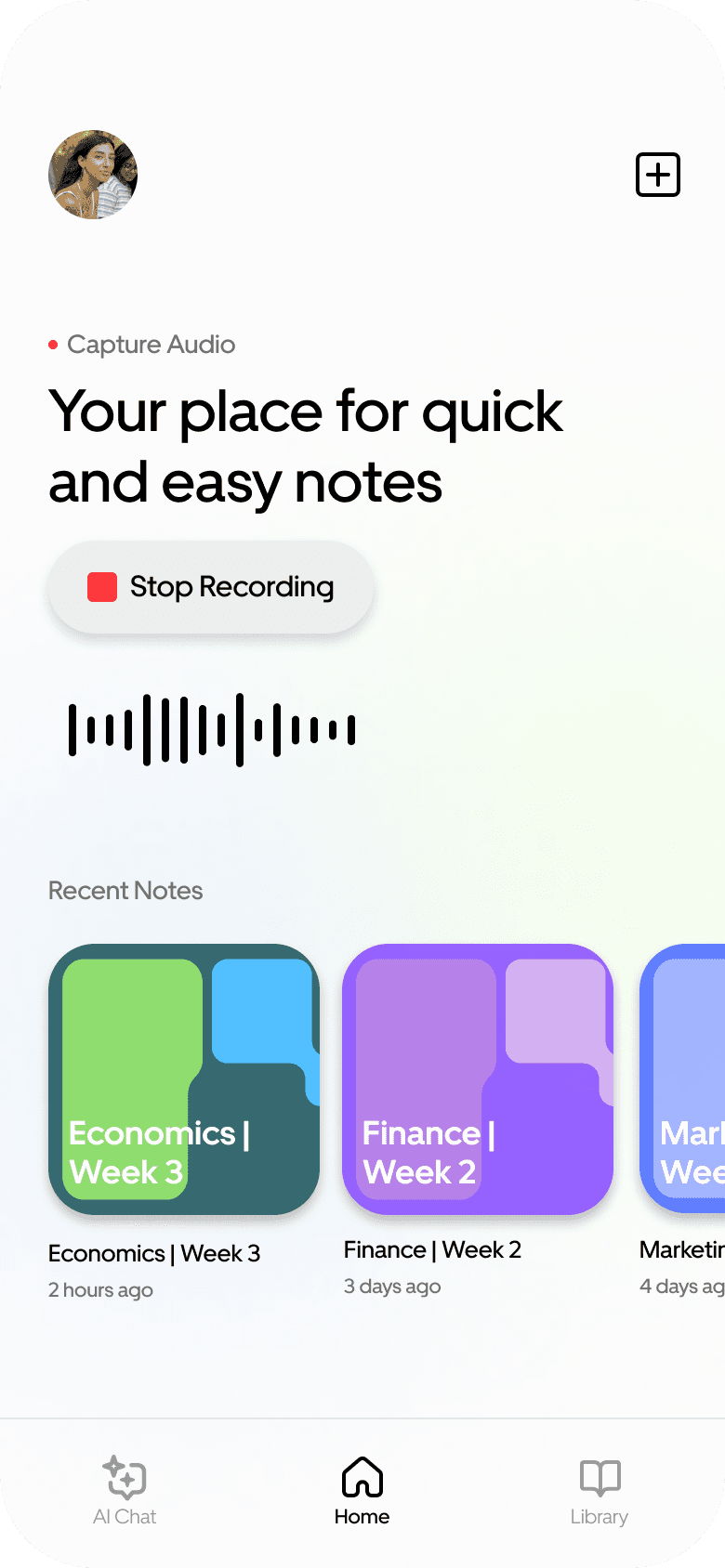 Record your classes, generate notes, and learn faster with AI built on your own course material, all in one place.